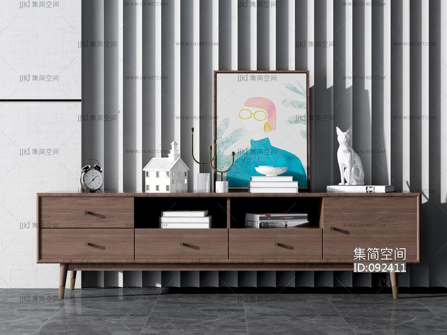 北欧现代实木电视柜 3d模型下载 [模型ID:92411]