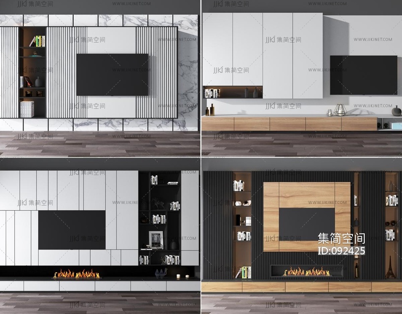 现代一体式电视柜背景墙 3d模型下载 [模型ID:92425]