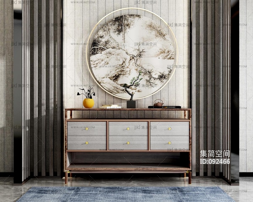 新中式实木端景柜 3d模型下载 [模型ID:92466]