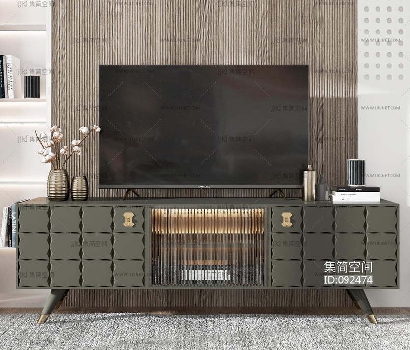 现代电视背景墙,满墙电视柜,电视机,储物柜,饰品摆件3D模型3d模型下载