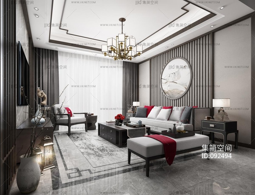 新中式客厅 3d模型下载 [模型ID:92494]