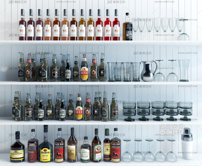 现代酒水酒具组合 3d模型下载 [模型ID:92514]
