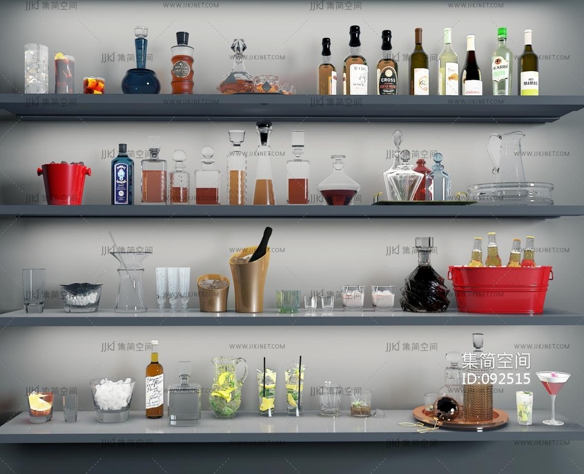 现代酒水饮料组合 3d模型下载 [模型ID:92515]