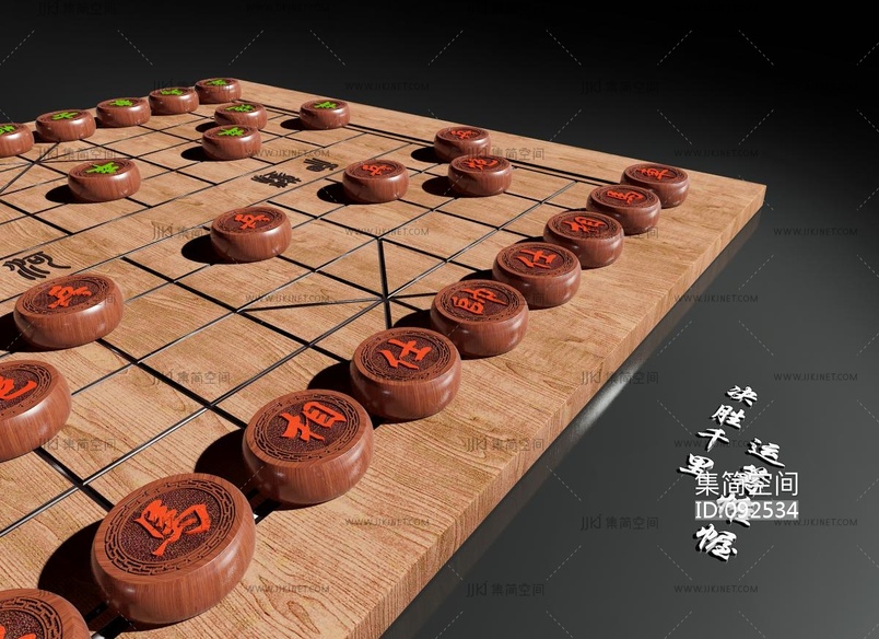 中式实木中国象棋,棋盘 3d模型下载 [模型ID:92534]