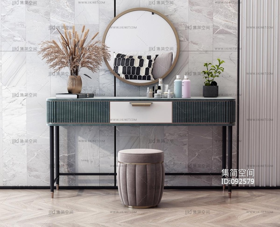 现代轻奢梳妆台圆形坐凳,花瓶 3d模型下载 [模型ID:92579]