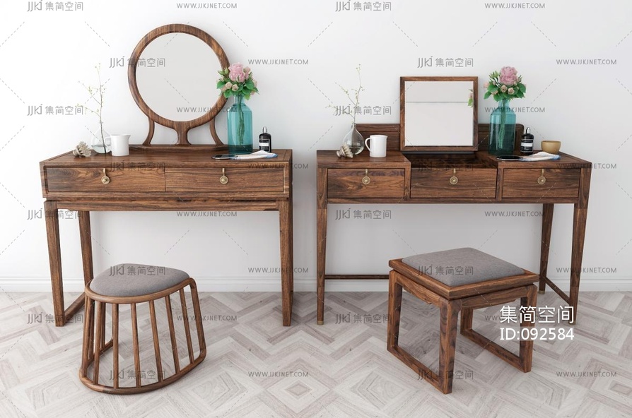 新中式实木梳妆台 3d模型下载 [模型ID:92584]
