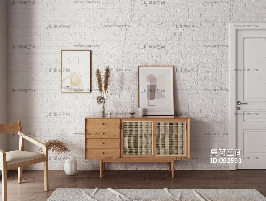 新中式实木边柜 3d模型下载 [模型ID:92591]