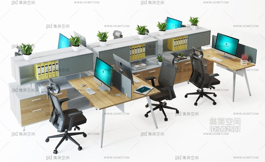 现代办公桌_办公位_工作桌_办公椅_文件柜_屏风_高柜_办公室3D模型3d模型下载