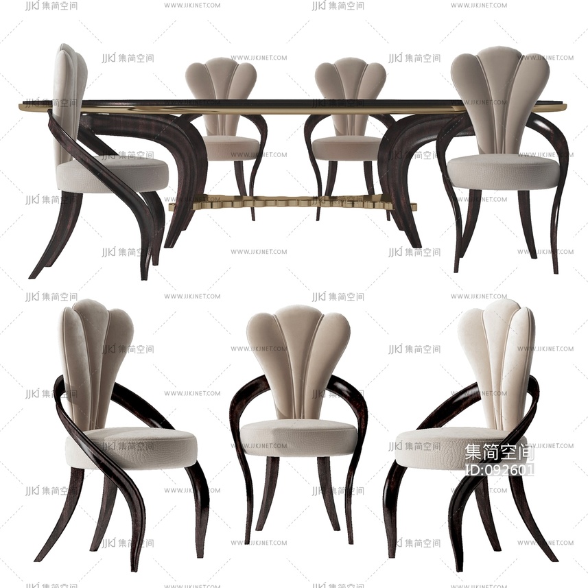 新古典实木餐桌椅 3d模型下载 [模型ID:92601]
