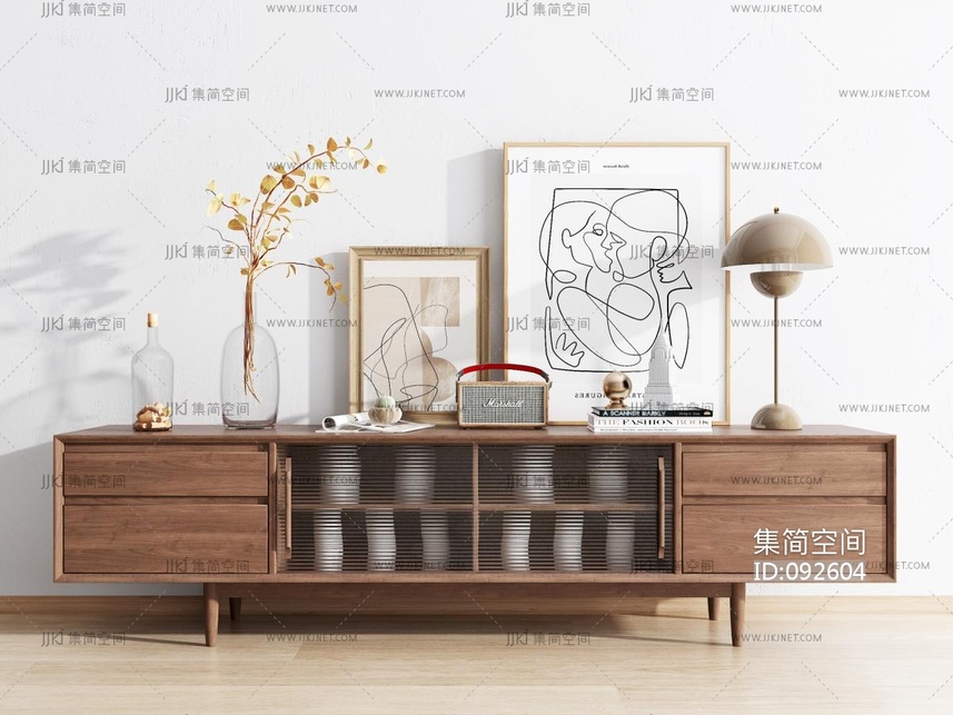 北欧现代原木电视柜 3d模型下载 [模型ID:92604]