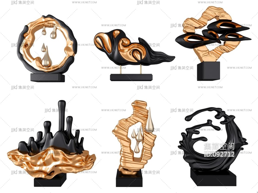 现代新中式雕塑摆件_饰品摆件组合3D模型3d模型下载