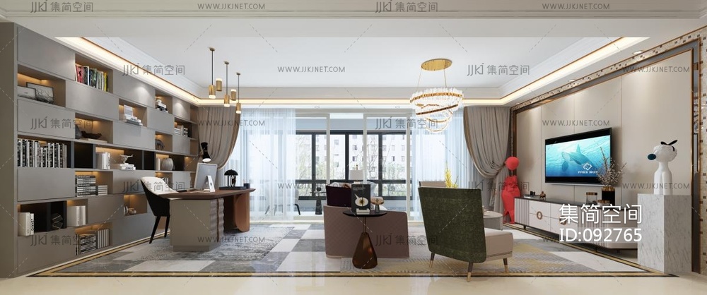 06现代轻奢客厅书房卧室 3d模型下载 [模型ID:92765]
