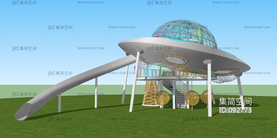 现代科幻滑梯儿童游乐设施 su草图模型下载 [模型ID:92773]