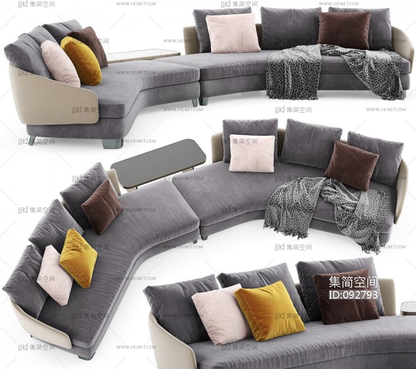 现代沙发三人沙发拼接沙发3D模型3d模型下载