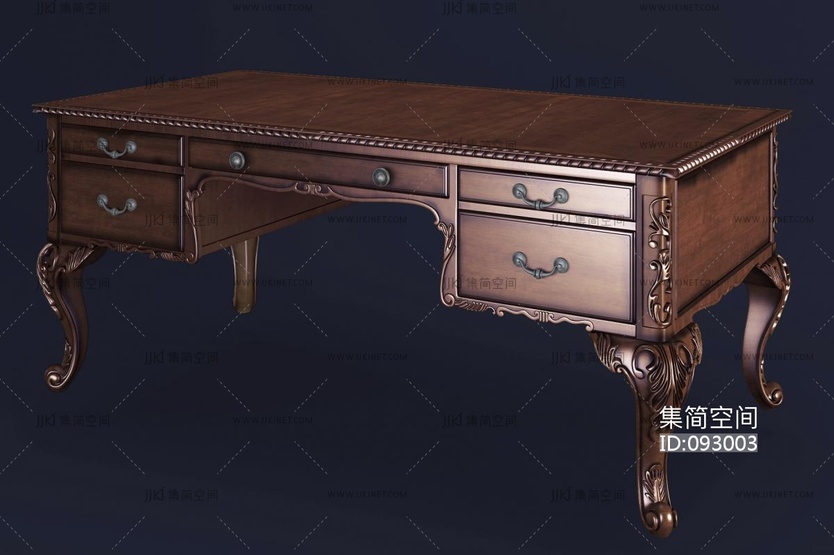 美式古典红木书桌 3d模型下载 [模型ID:93003]