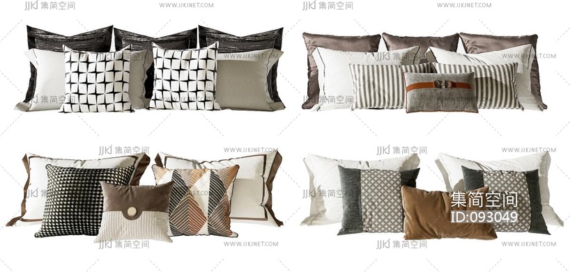 简欧抱枕组合3D模型3d模型下载