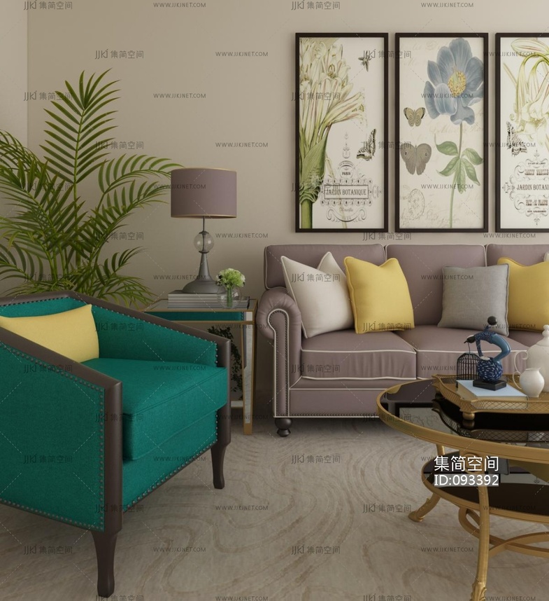 美式客厅沙发椅子组合 3d模型下载 [模型ID:93392]