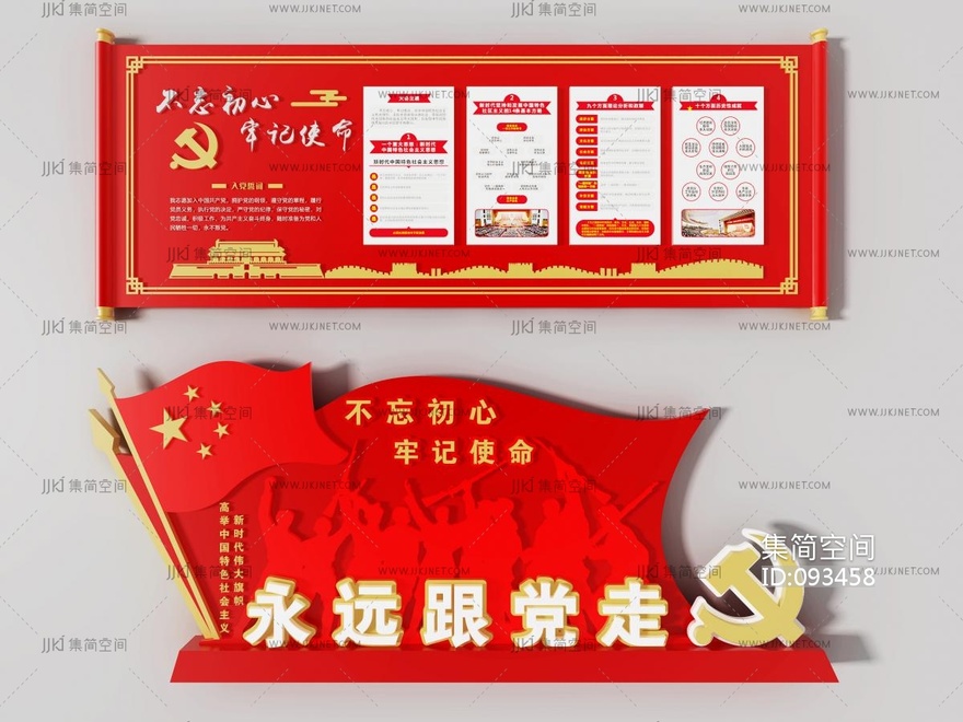 现代党建文化墙 3d模型下载 [模型ID:93458]