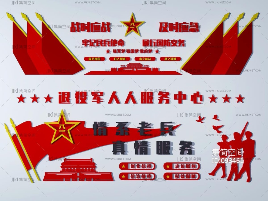 现代党建文化墙 3d模型下载 [模型ID:93461]