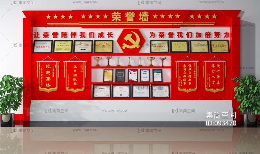 现代党建荣誉墙 3d模型下载 [模型ID:93470]