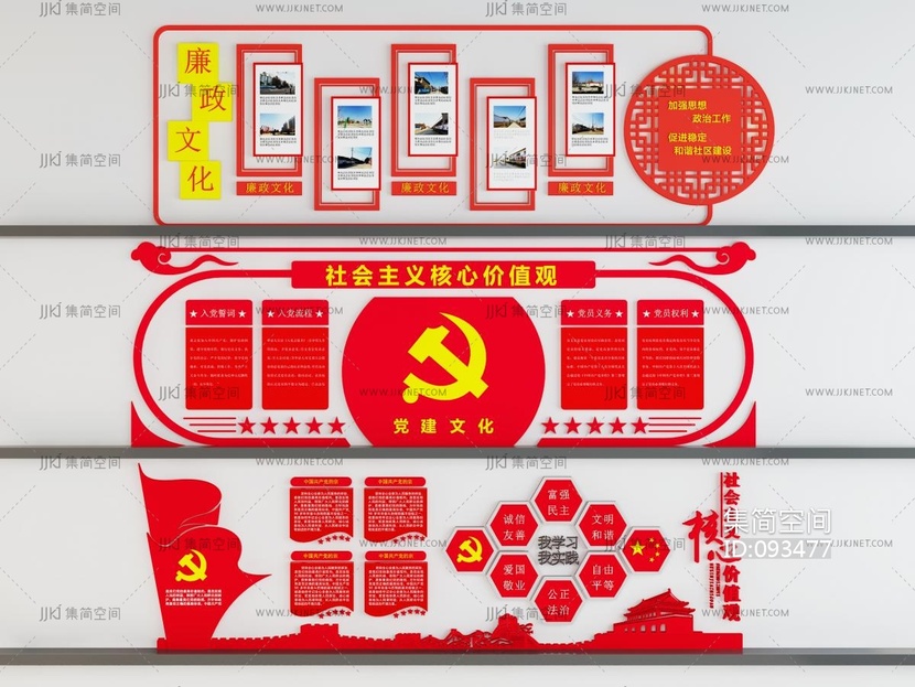 现代党建宣传栏 3d模型下载 [模型ID:93477]
