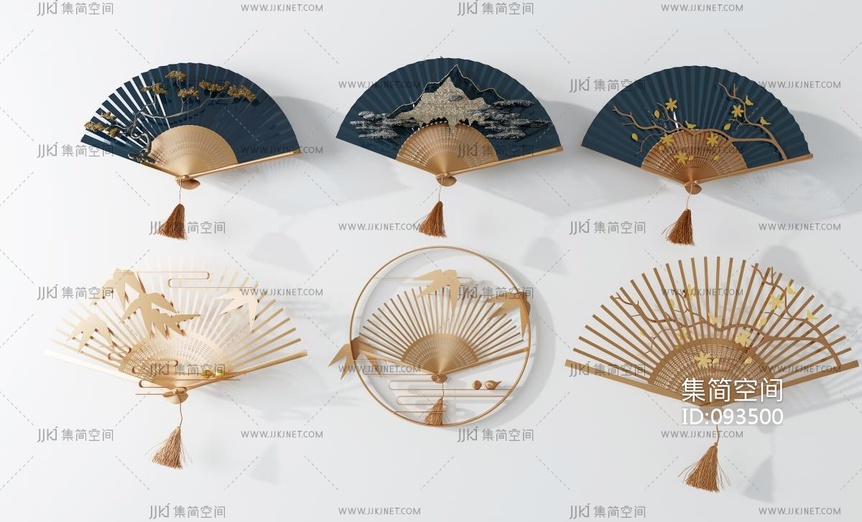 新中式扇面墙壁挂件 3d模型下载 [模型ID:93500]