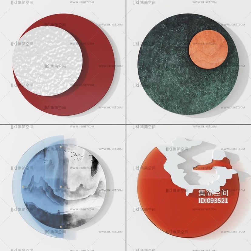 新中式圆形墙饰,挂件 3d模型下载 [模型ID:93521]