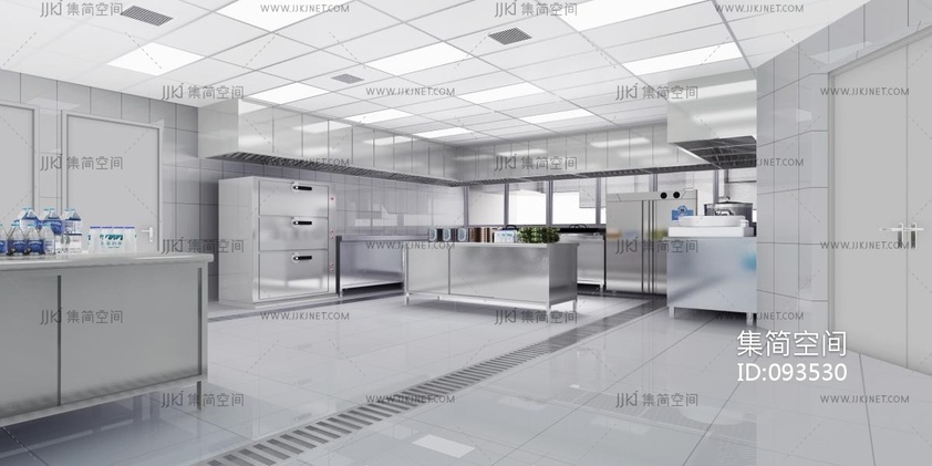 现代酒店中央厨房后厨 3d模型下载 [模型ID:93530]