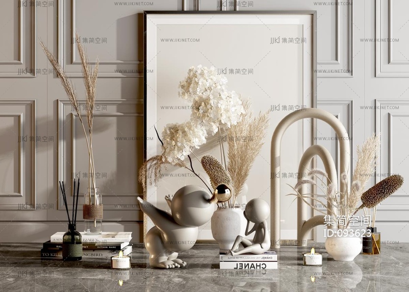 复古法式摆件组合_绿城玫瑰园会所_端景台_花艺_屏风3D模型3d模型下载