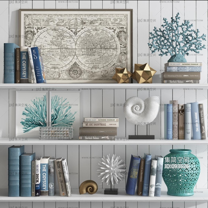 北欧地中海,珊瑚,书籍,雕塑,摆件, 3d模型下载 [模型ID:93626]
