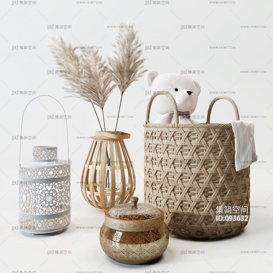 北欧干芦苇竹编花瓶竹篓摆件 3d模型下载 [模型ID:93632]