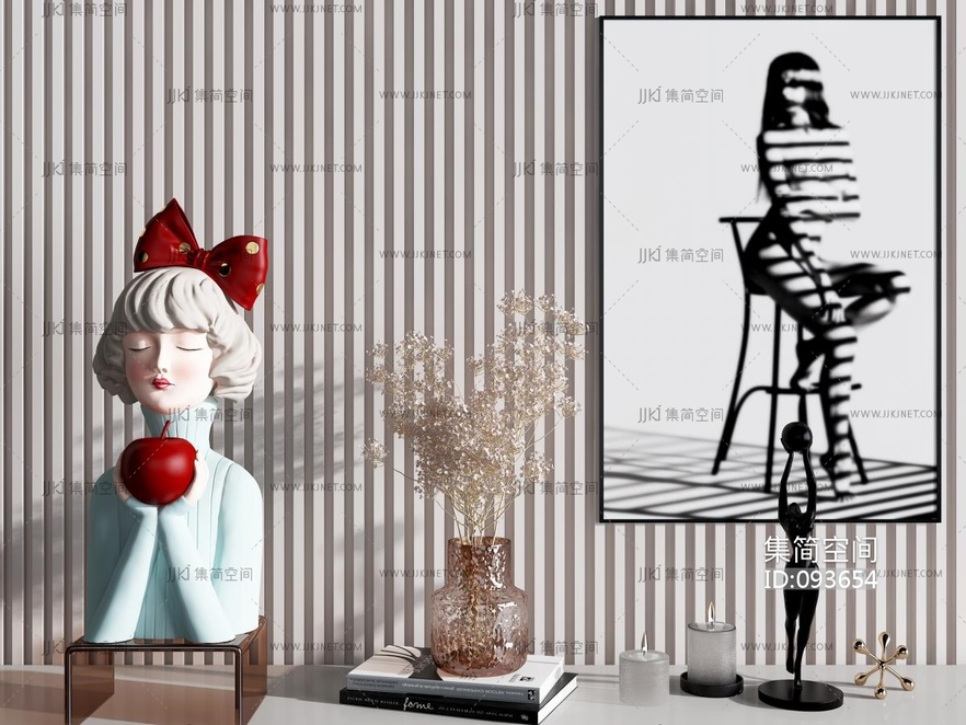 现代干枝花瓶,雕塑,挂画,书籍,摆件 3d模型下载 [模型ID:93654]