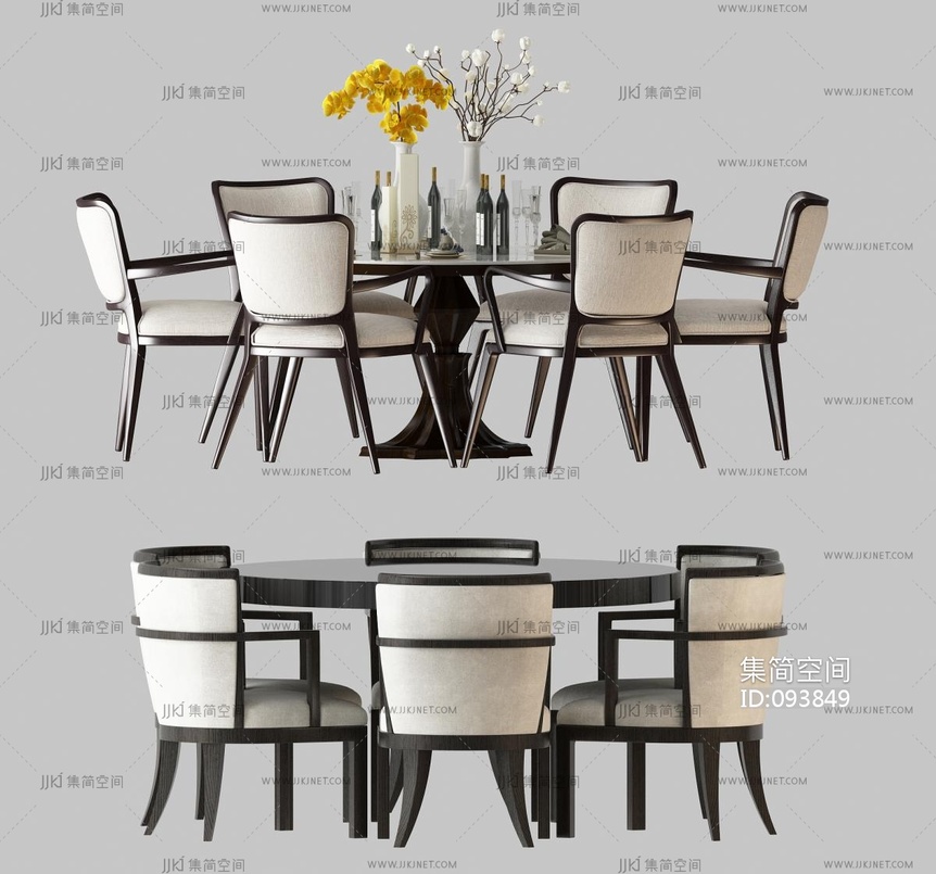 新中式圆形餐桌椅, 3d模型下载 [模型ID:93849]