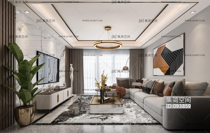 现代轻奢客厅 3d模型下载 [模型ID:93859]