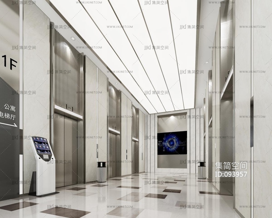 现代公寓电梯厅过道 3d模型下载 [模型ID:93957]