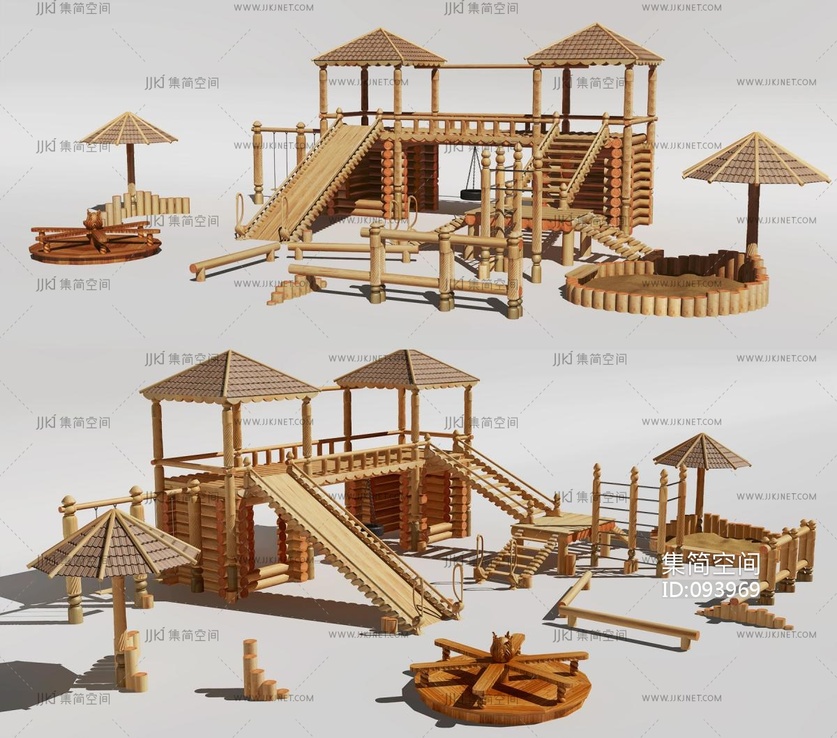 儿童原木游乐场 游乐场地器材娱乐器材3d模型下载