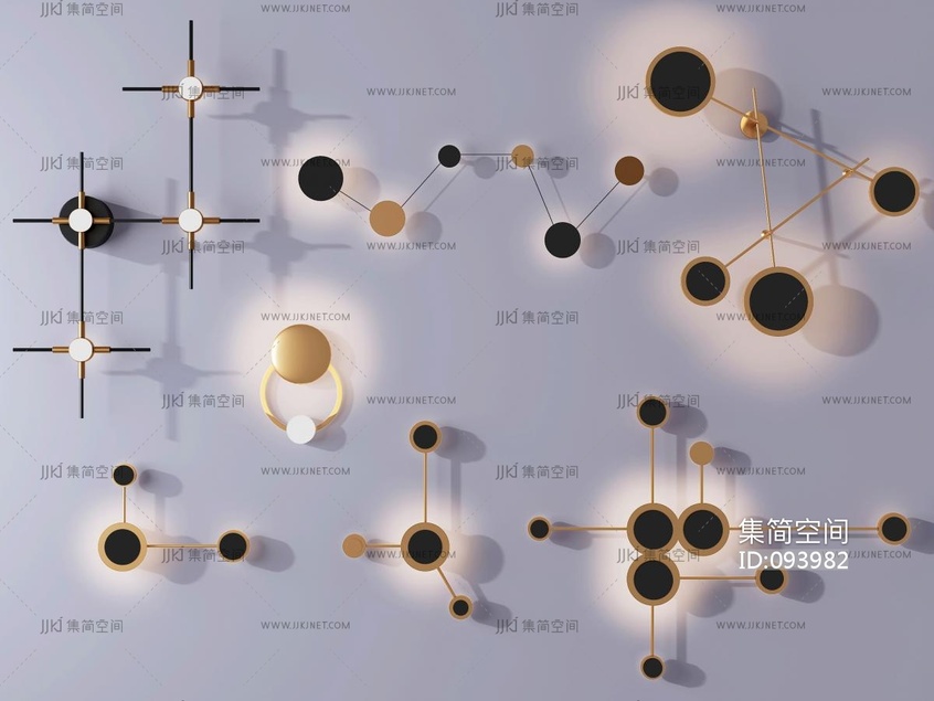 现代金属多头圆形壁灯 3d模型下载 [模型ID:93982]