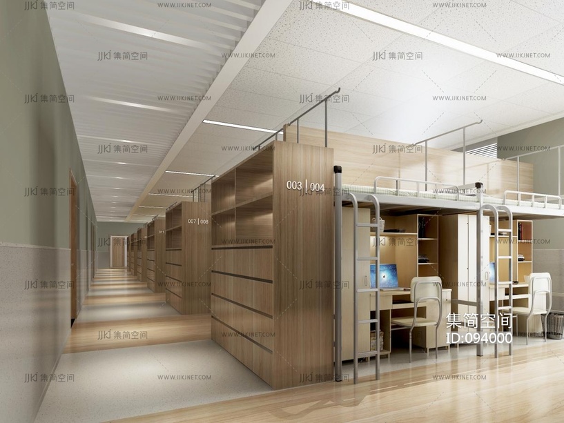 现代简约学校宿舍,上下铺 3d模型下载 [模型ID:94000]