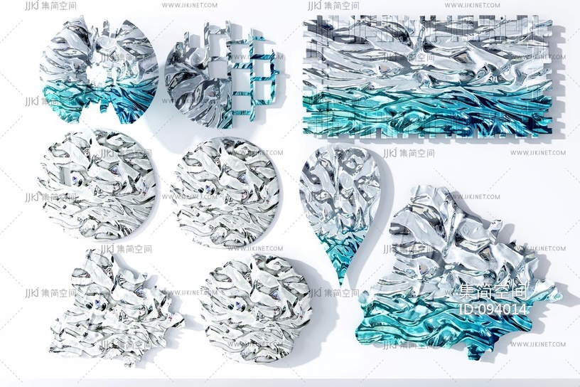现代曲面金属波浪纹挂件,墙饰 3d模型下载 [模型ID:94014]