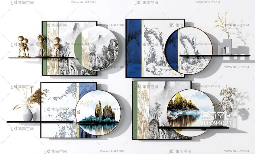 新中式端景墙壁挂件 3d模型下载 [模型ID:94021]