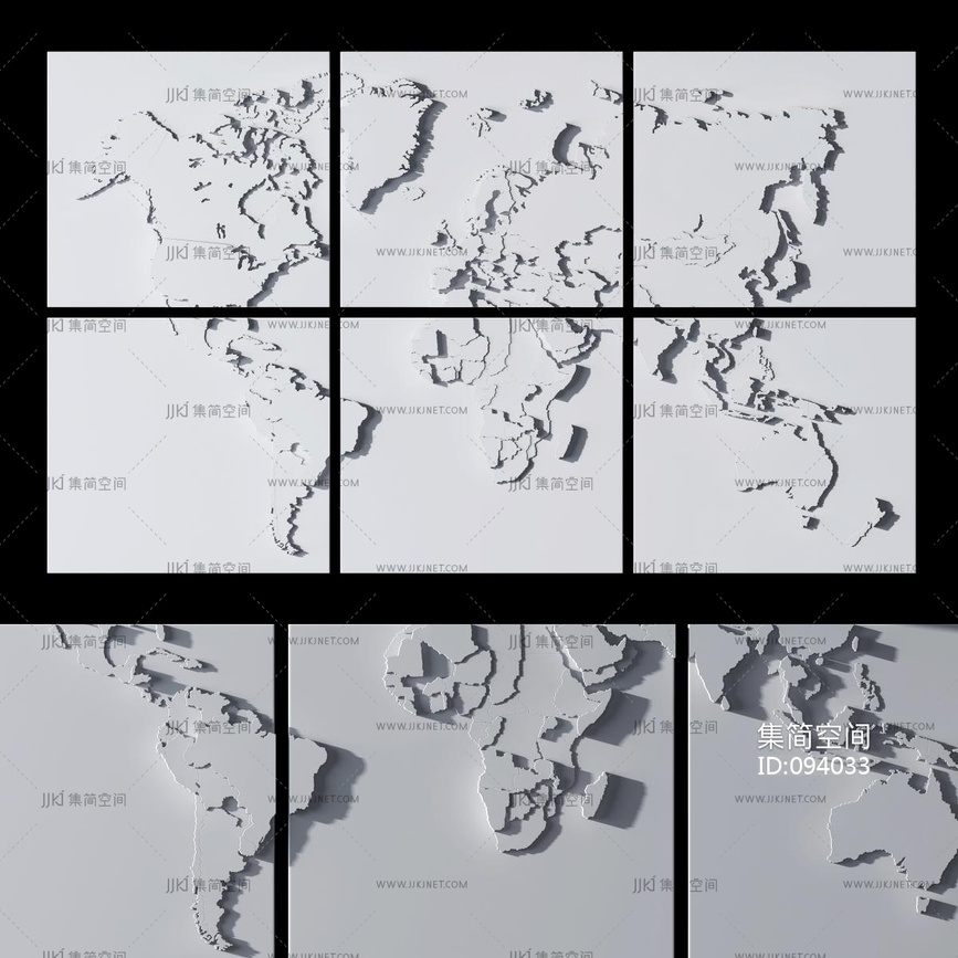 现代世界地图浮雕壁挂件,墙饰 3d模型下载 [模型ID:94033]
