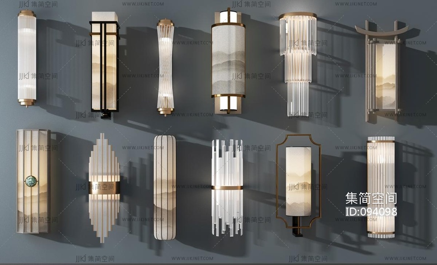 17-10-27现代新中式轻奢金属水晶壁灯 3d模型下载 [模型ID:94098]