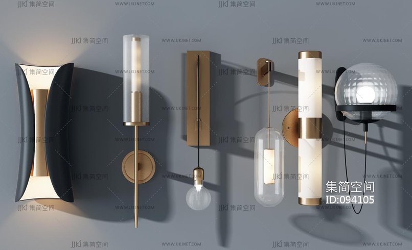 新中式金属玻璃水晶壁灯 3d模型下载 [模型ID:94105]