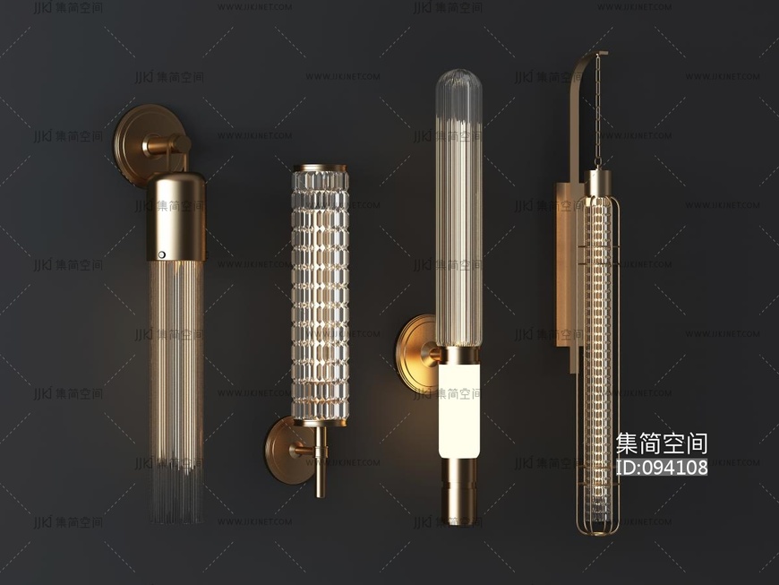 现代金属玻璃壁灯, 3d模型下载 [模型ID:94108]