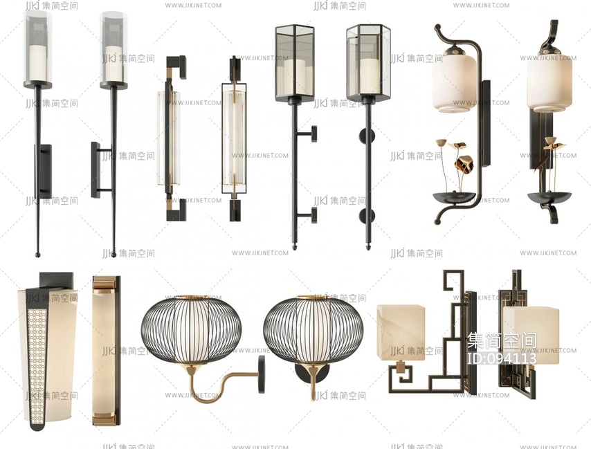 新中式金属灯笼壁灯 3d模型下载 [模型ID:94113]