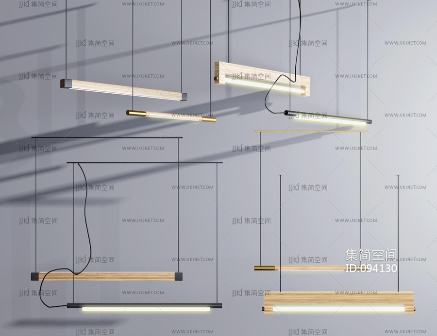 现代实木办公条形吊灯 3d模型下载 [模型ID:94130]