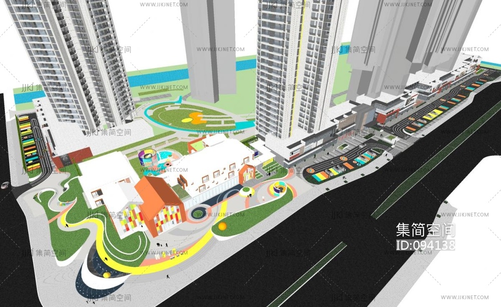 保利顶级现代童趣花园网红示范区商业及幼儿园模型 su草图模型下载 [模型ID:94138]