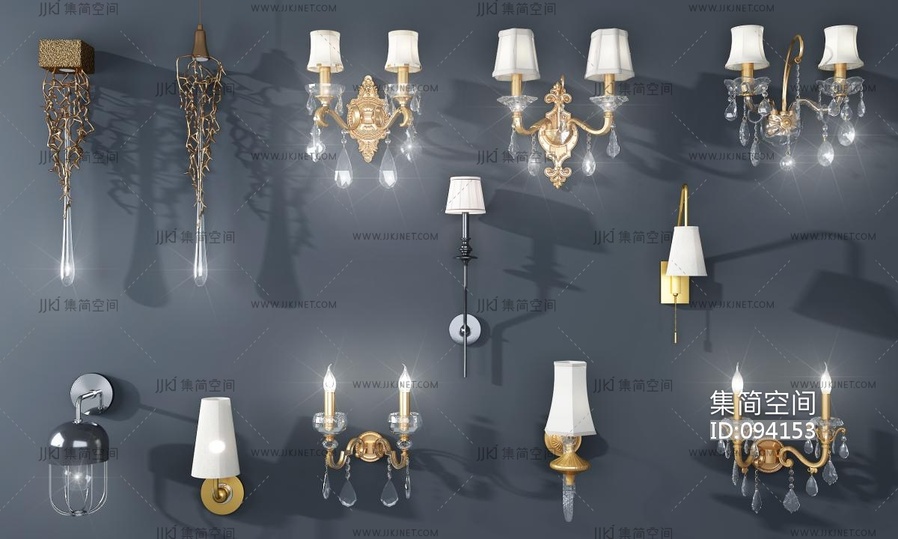 欧式水晶轻奢金属壁灯组合 3d模型下载 [模型ID:94153]
