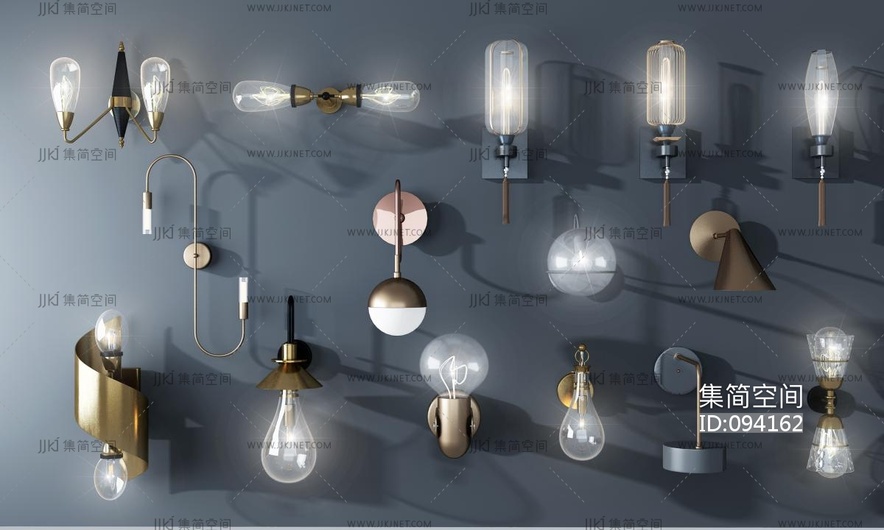 新中式铁艺球形灯泡金属壁灯组合 3d模型下载 [模型ID:94162]