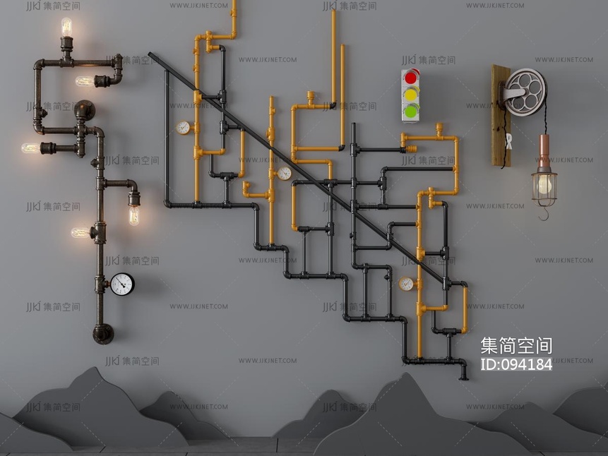 工业风管道装饰壁灯 3d模型下载 [模型ID:94184]